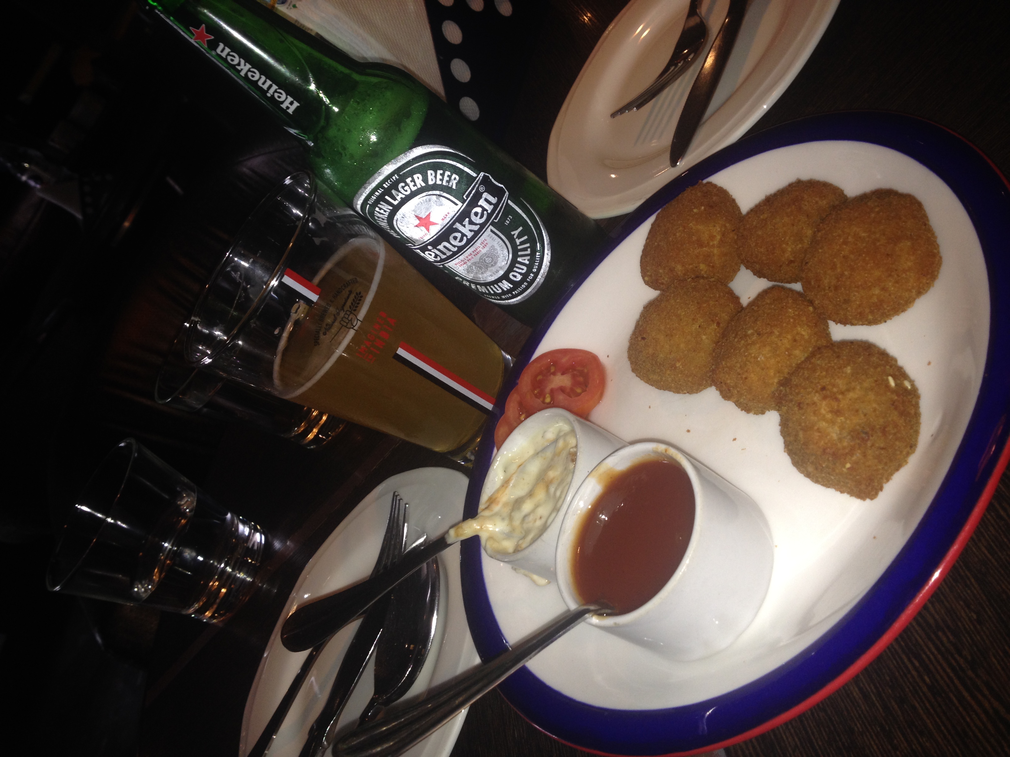 What we had: We tried Golden-Fired Mushrooms with Tartar Sauce worth INR 295. But the taste was a dampener. We also had Heineken for INR 150.